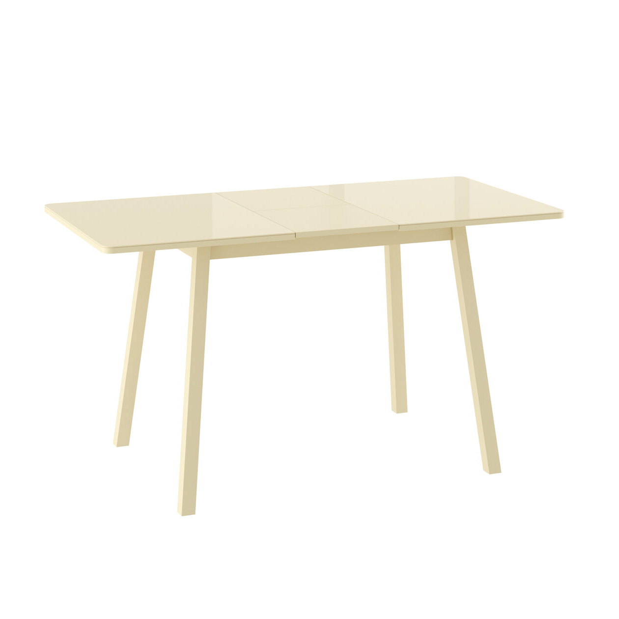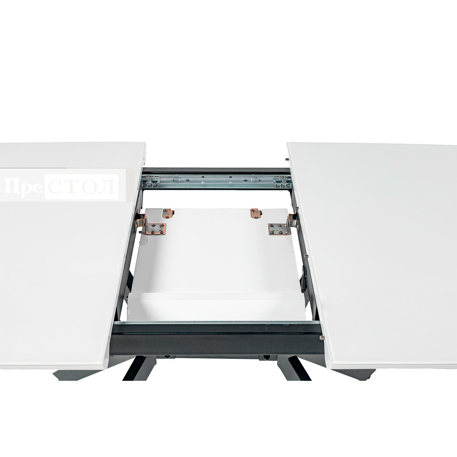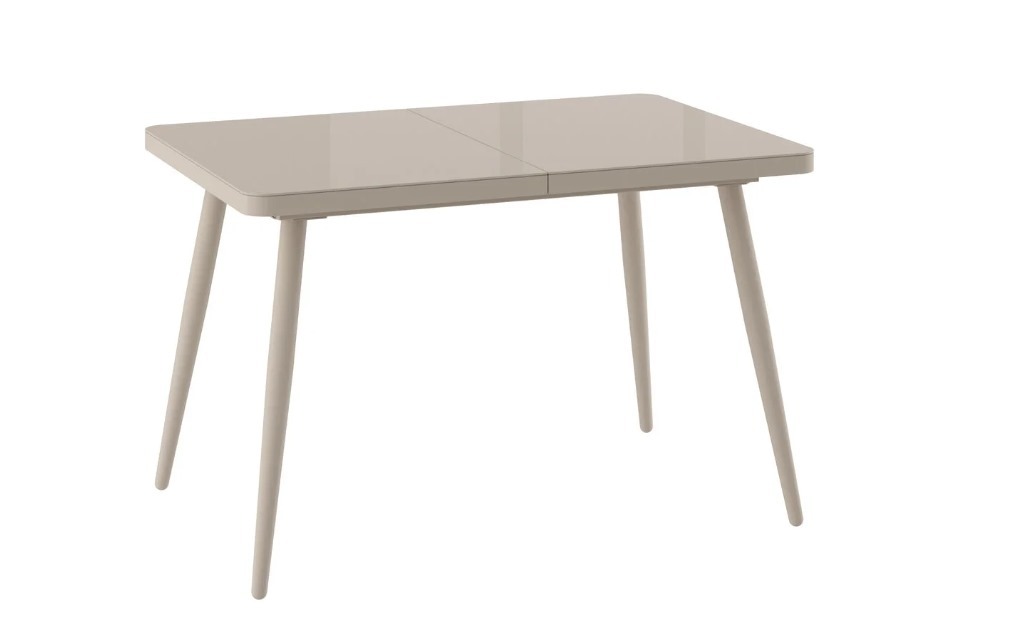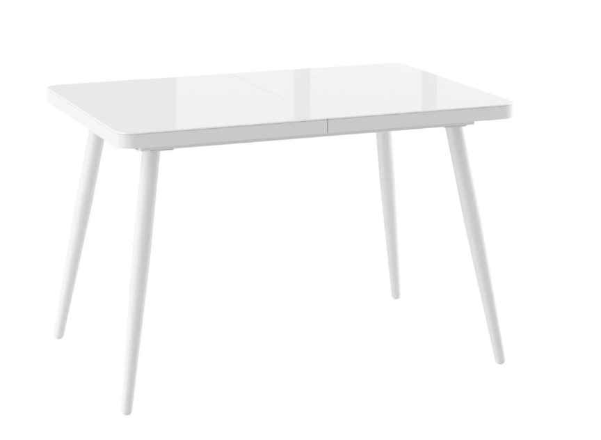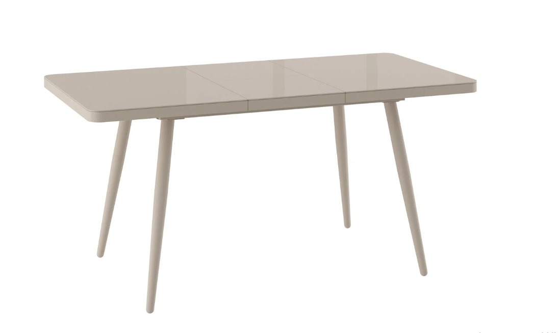 Столешница из закаленного стекла имеет закругленные углы и глянцевую поверхность, легко очищается. Центральная вставка позволяет увеличить длину стола до 180 сантиметров. Конусообразные ножки изготовлены из металла с порошковым напылением, сохраняют устойчивость на любом полу. Столешница из ЛДСП (32 мм) и закаленного стекла (4 мм) не впитывает жидкости, не окрашивается, не подвержена образованию царапин