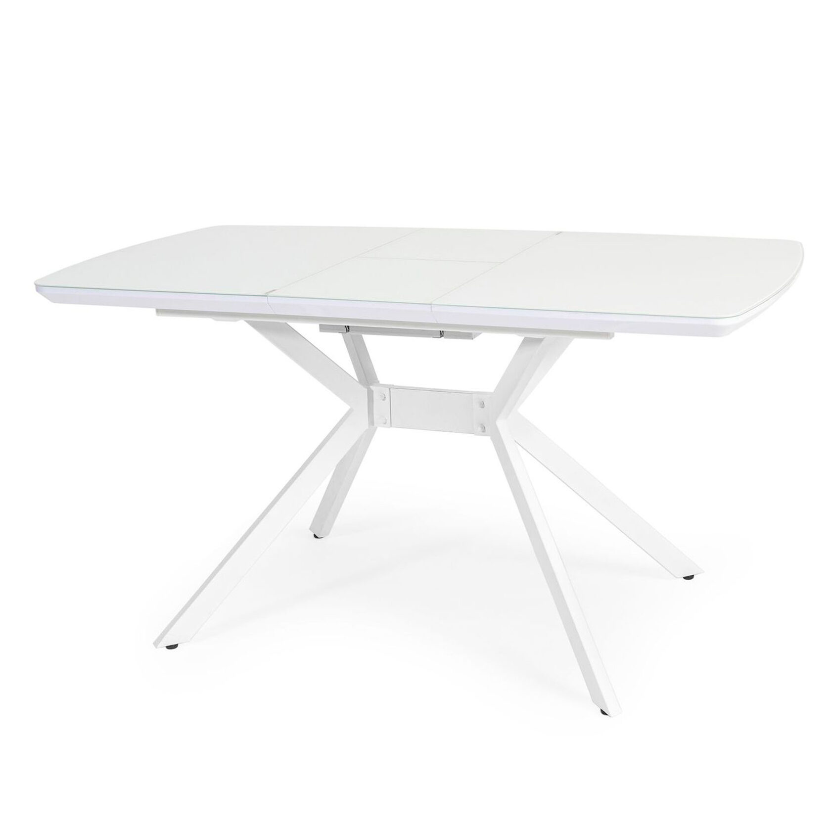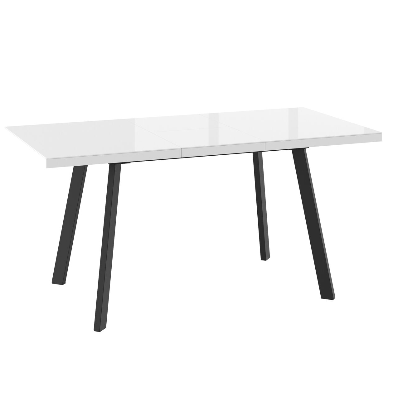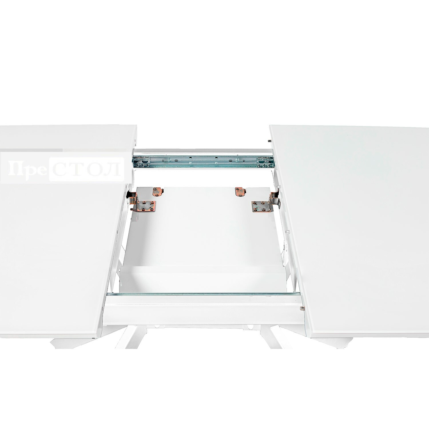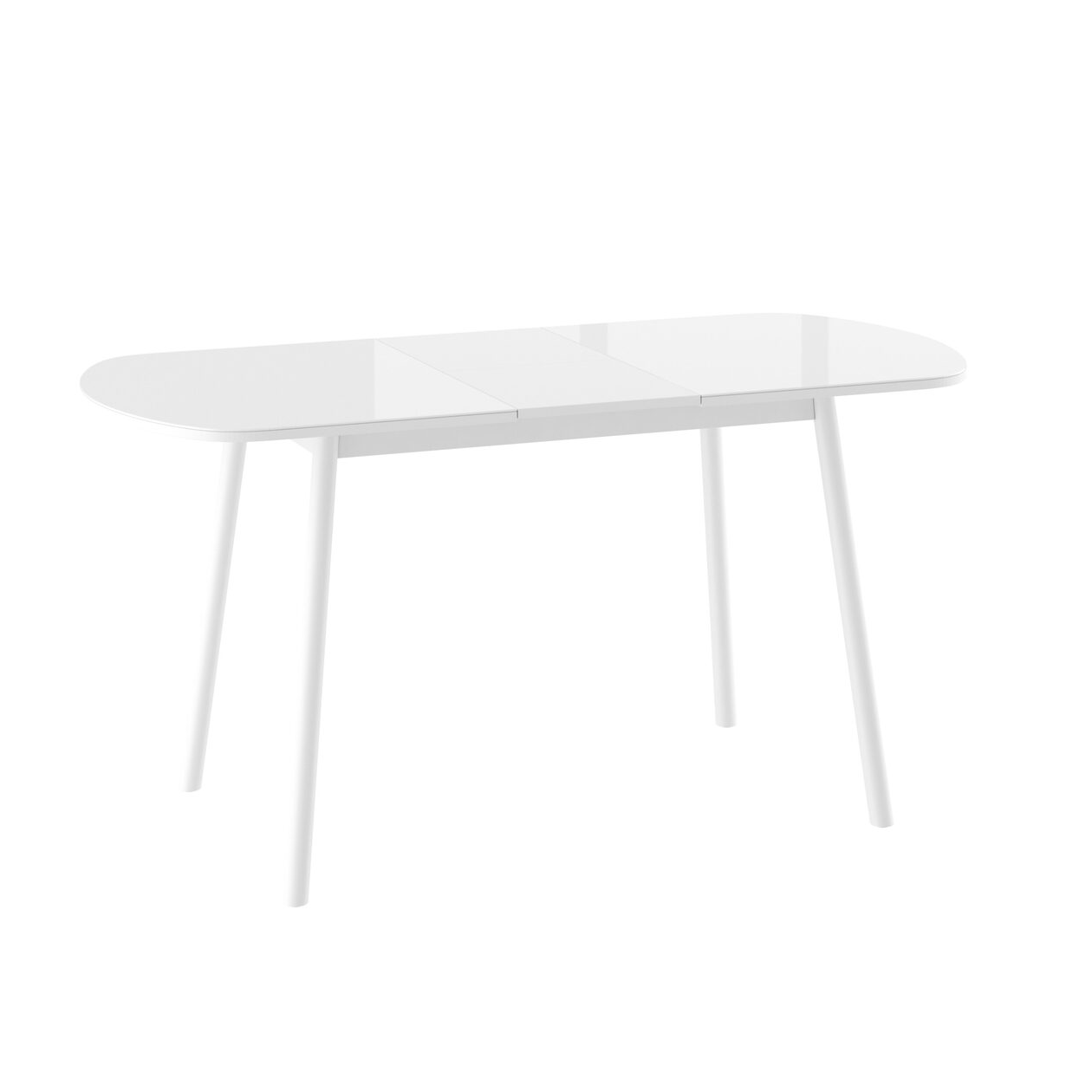 Столешница из закаленного стекла имеет закругленные углы и глянцевую поверхность, легко очищается. Центральная вставка позволяет увеличить длину стола до 180 сантиметров. Конусообразные ножки изготовлены из металла с порошковым напылением, сохраняют устойчивость на любом полу. Столешница из ЛДСП (32 мм) и закаленного стекла (4 мм) не впитывает жидкости, не окрашивается, не подвержена образованию царапин