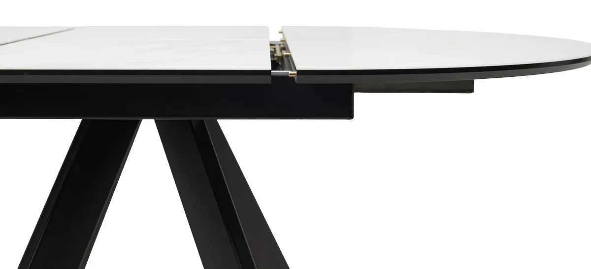 Дизайнерский обеденный стол отличается функциональностью и практичностью. Современные материалы делают его надежным и стильным. Конструкция модели обеспечивает комфортное размещение от 4 до 8 человек. Круглая столешница копирует натуральный белый или черный мрамор, она выдерживает воздействие влаги, устойчива царапинам и другим повреждениям. Центральная вставка увеличивает полезную площадь на 40 сантиметров. Размеры: Диаметр столешницы - 120 см + вставка 40 см Высота - 79