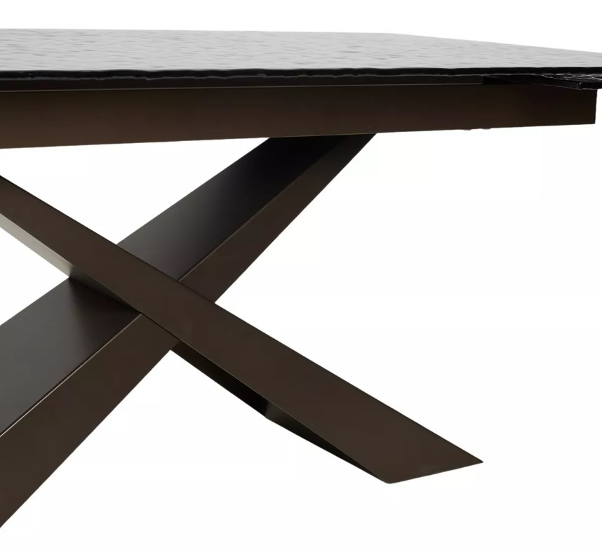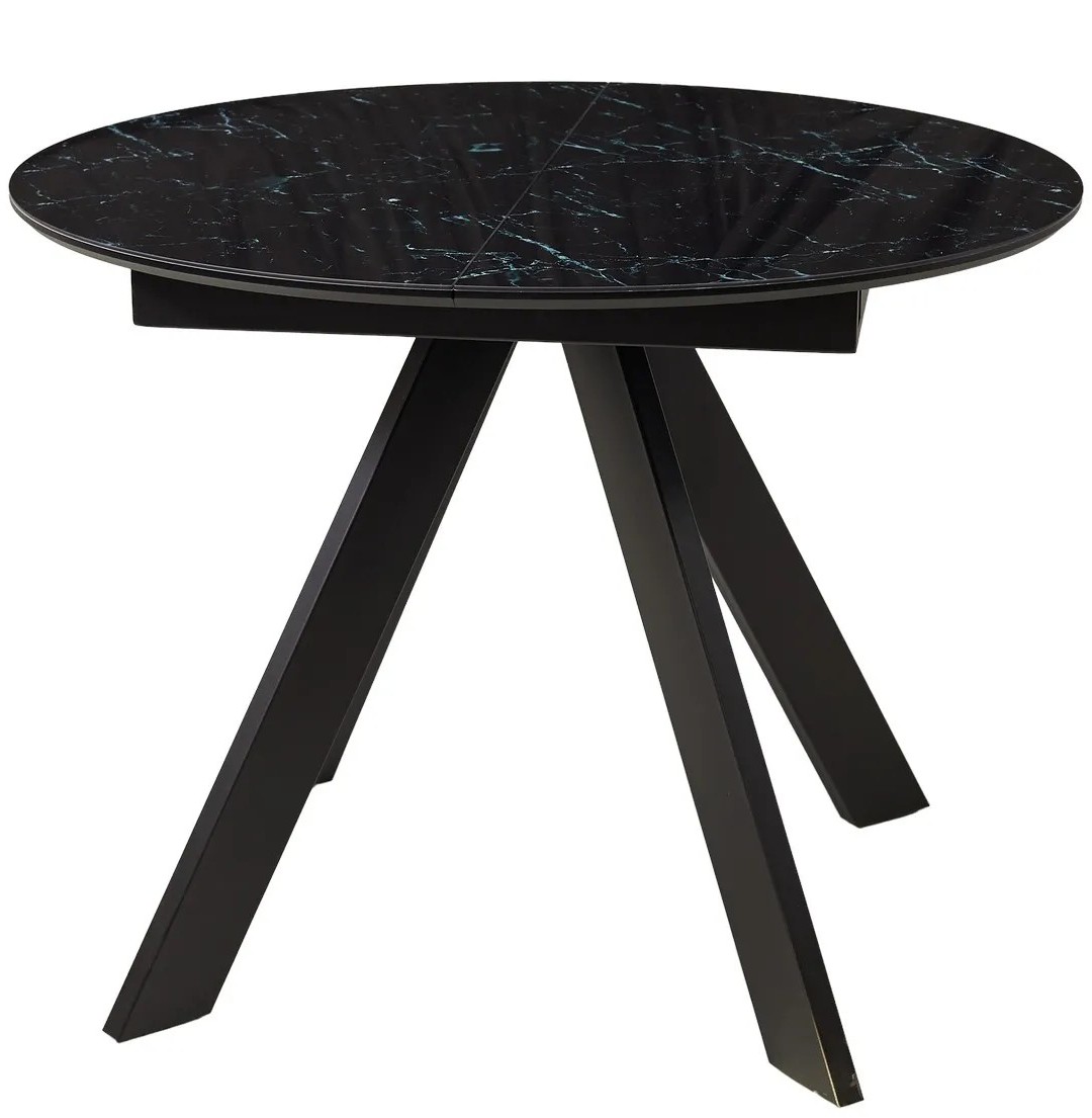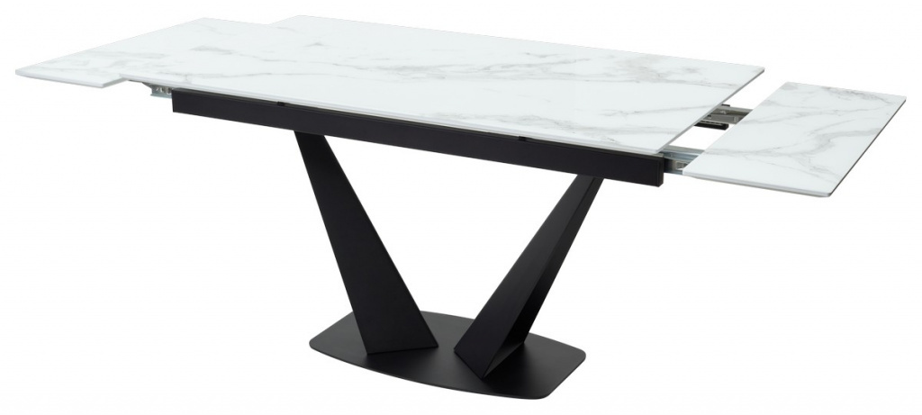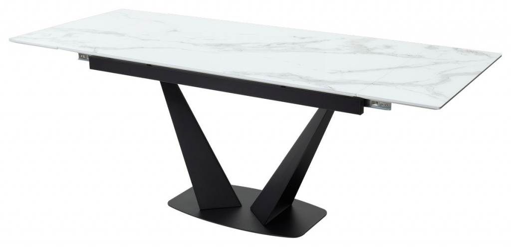Раскладной обеденный стол подходит для гостиной или кухни в стиле лофт, индастриал. Прямоугольная столешница воспроизводит рисунок натурального мрамора, отличается прочностью. Ее длина увеличивается до 200 сантиметров благодаря торцевым вставкам и механизму раскладки. Массивная опора из металла покрыта черной порошковой краской. Столешница из стекла и МДФ устойчива к царапинам, сколам, воздействию влаги и высоких температур. Размеры: Длина столешницы - 140 см + вставка +30 +30см Ширина - 80