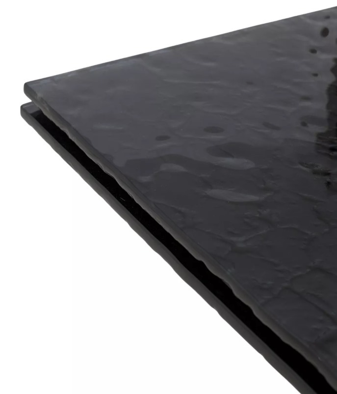 Поверхность столешницы выполнена из закаленного стекла. Этот материал не подвержен воздействию высокой влажности, температур до 100 градусов и механическим воздействиям.