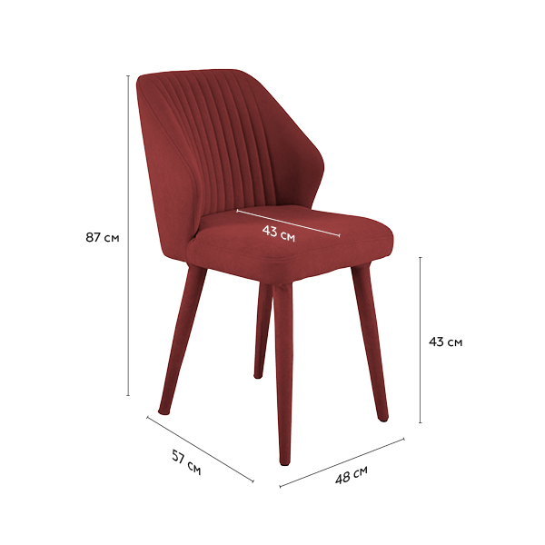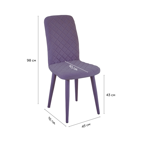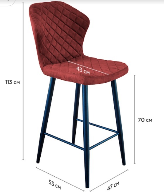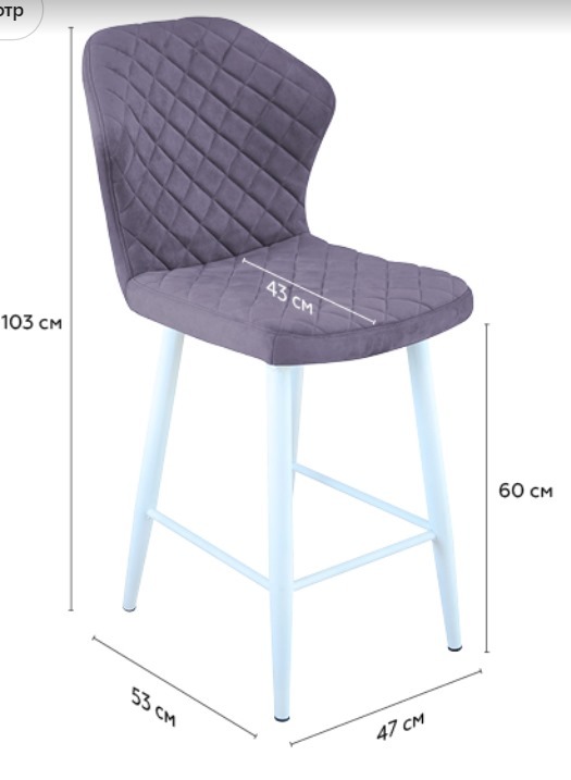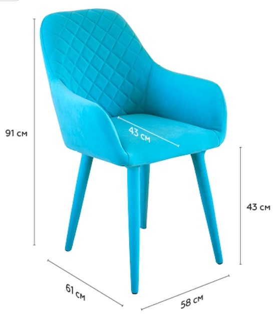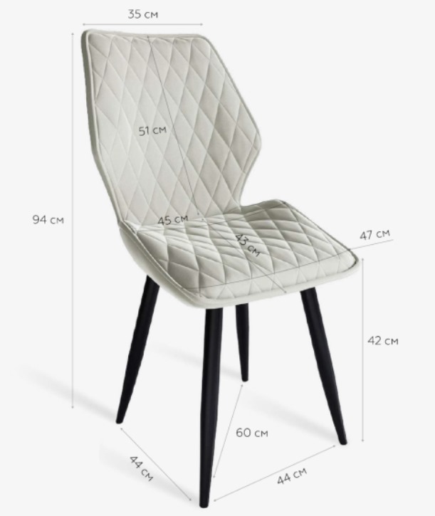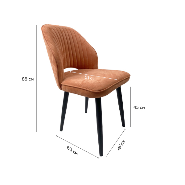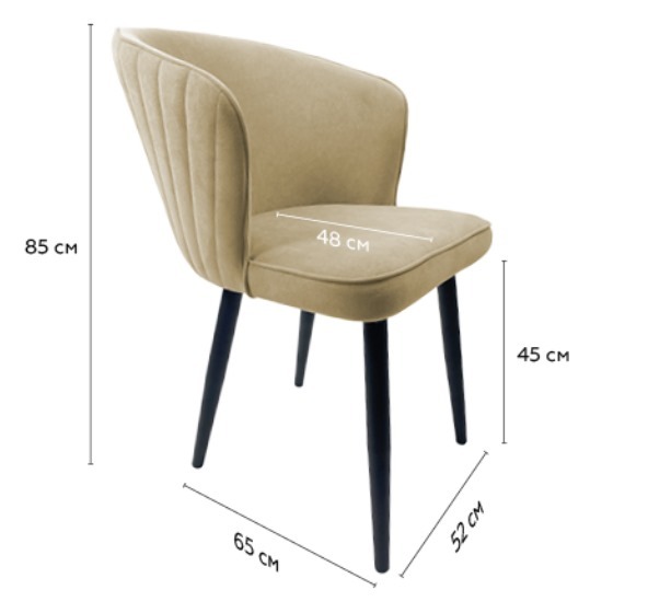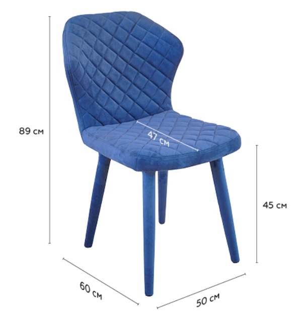 Велюровая обивка не потеряет своего внешнего вида и точно прослужит долго. Стул может быть на круглых и прямоугольных ножках. Размеры: Ширина стула 48 см Ширина сиденья 48 см Глубина стула 60 см Глубина сиденья 51 см Высота от пола до сиденья 45 см Высота стула с учётом спинки 88 см Максимальная нагрузка 140 кг