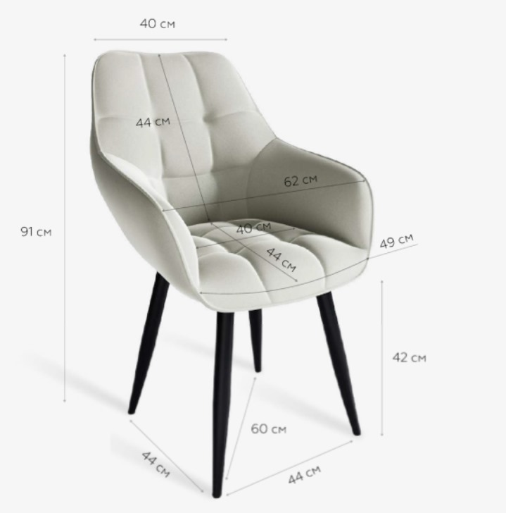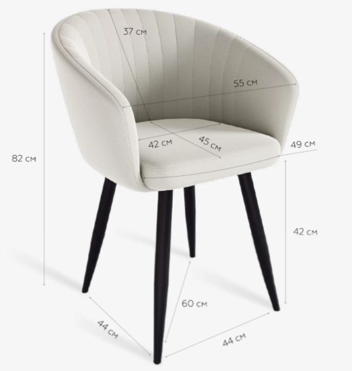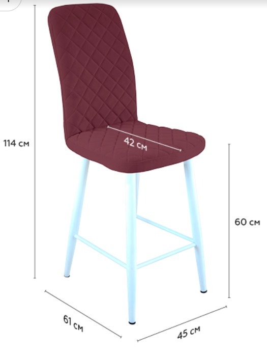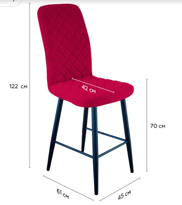 Габариты Ширина стула 61 см Ширина сиденья 49 см Глубина стула 44 см Глубина сиденья 45 см Высота от пола до сиденья 42 см Высота стула с учётом спинки 86 см