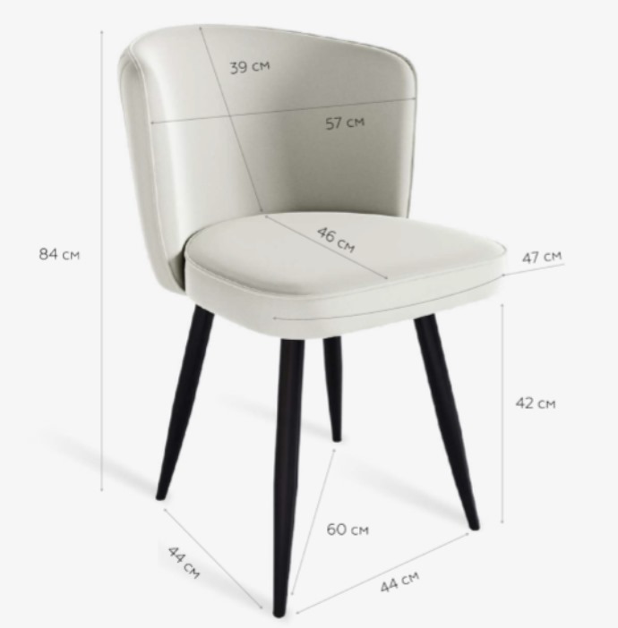 Габариты Ширина стула 57 см Ширина сиденья 49 см Глубина стула 44 см Глубина сиденья 48 см Высота от пола до сиденья 44 см Высота стула с учётом спинки 84 см