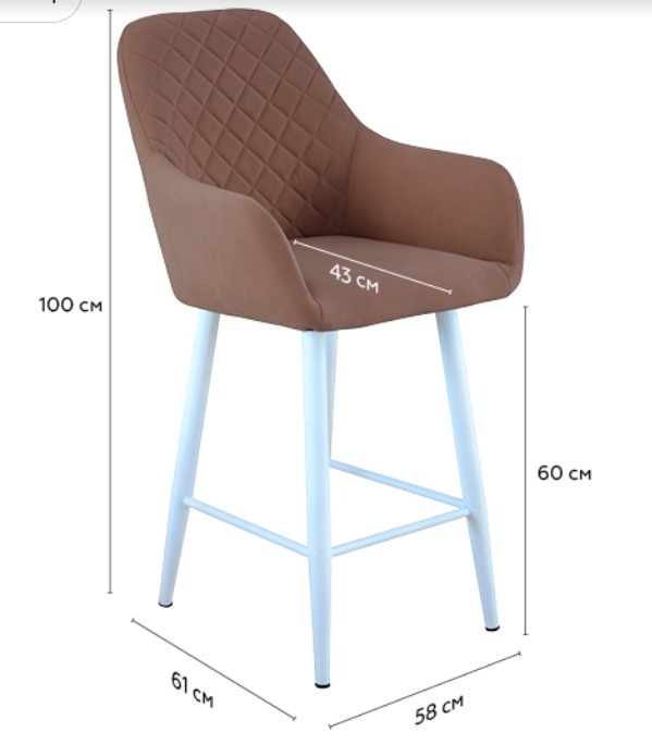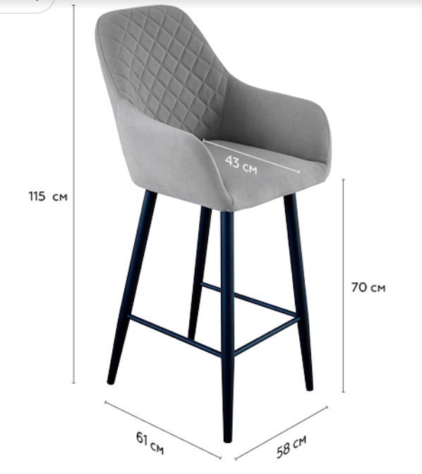 Размеры: Ширина стула 58 см Ширина сиденья 50 см Глубина стула 61 см Глубина сиденья 46 см Высота от пола до сиденья 43 см Высота стула с учётом спинки 87 см