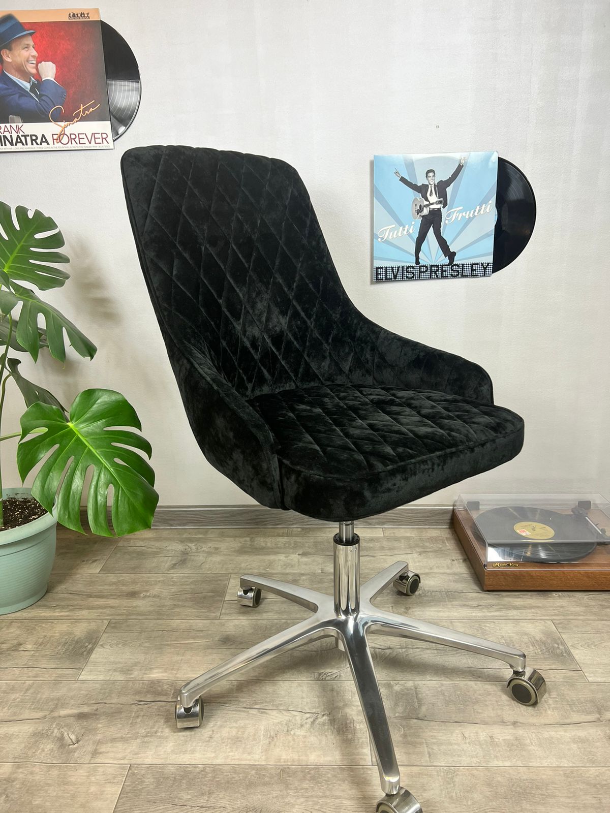 Очень удобный поворотный стул! Размеры Ш50 х Г63 х В85 см. Размеры сиденья Ш50 х Г46 см. Обивка: микровелюр. Каркас стула - металлический. Опоры - металл (порошковая окраска). Высота спинки:39 см, ширина спинки 42 см. Высота от пола до сиденья: 46 см. Высота с подлокотником - 69 см. Максимальная нагрузка 120 кг. Гарантия 12 месяцев.