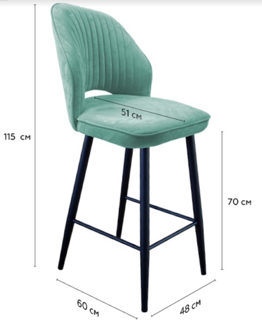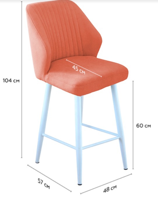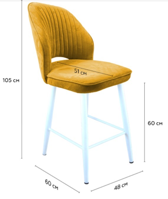 Габариты Ширина стула 48 см Ширина сиденья 48 см Глубина стула 60 см Глубина сиденья 51 см Высота от пола до сиденья 45 см Высота стула с учётом спинки 88 см