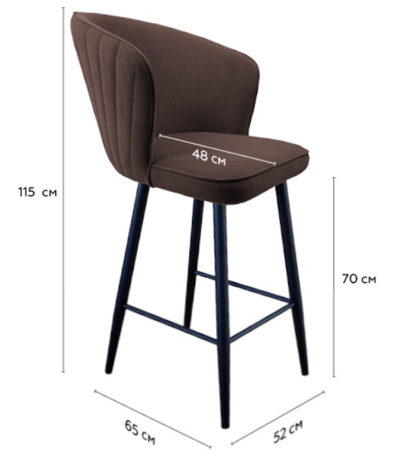 Габариты Ширина стула 52 см Ширина сиденья 47 см Глубина стула 65 см Глубина сиденья 48 см Высота от пола до сиденья 45 см Высота стула с учётом спинки 85 см