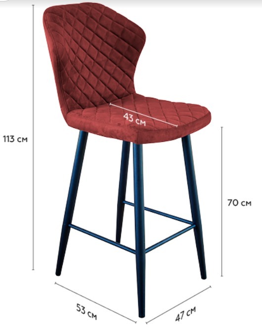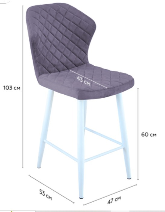 Габариты Ширина стула 50 см Ширина сиденья 47 см Глубина стула 60 см Глубина сиденья 43 см Высота от пола до сиденья 45 см Высота стула с учётом спинки 89 см