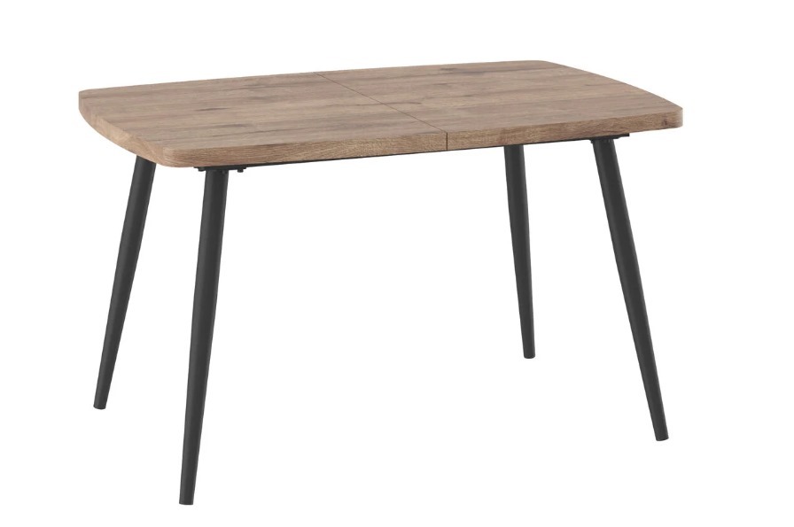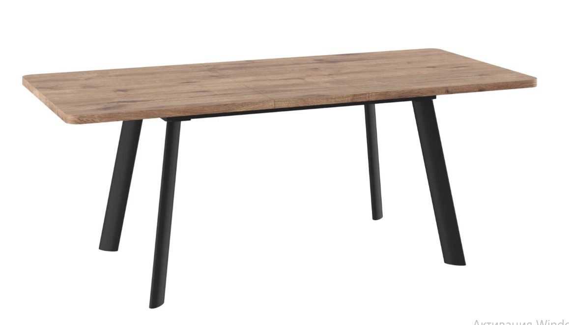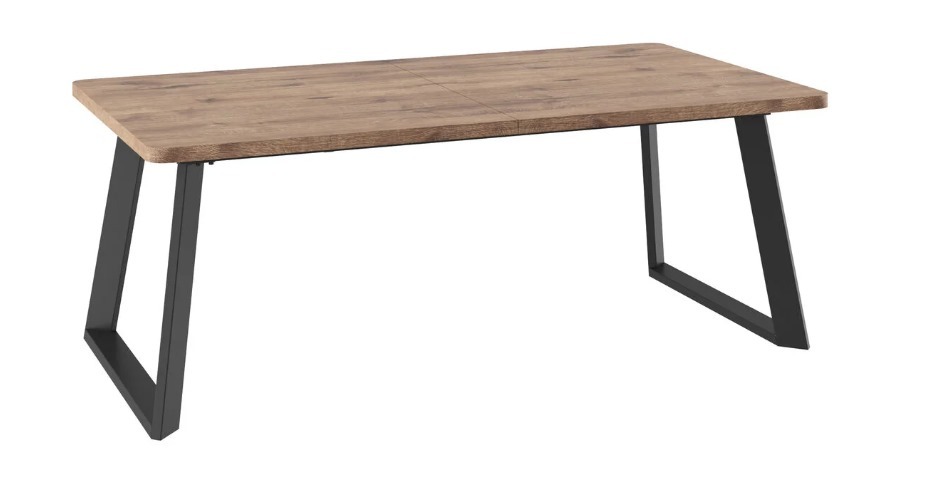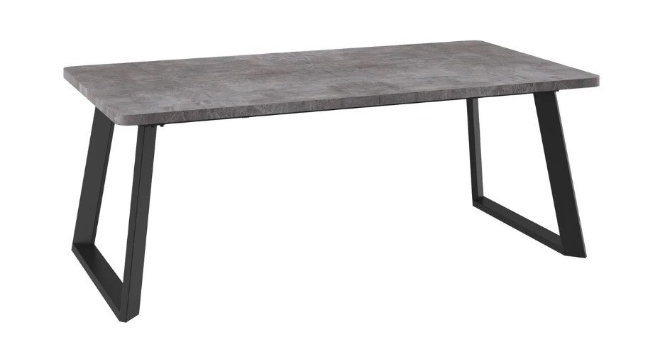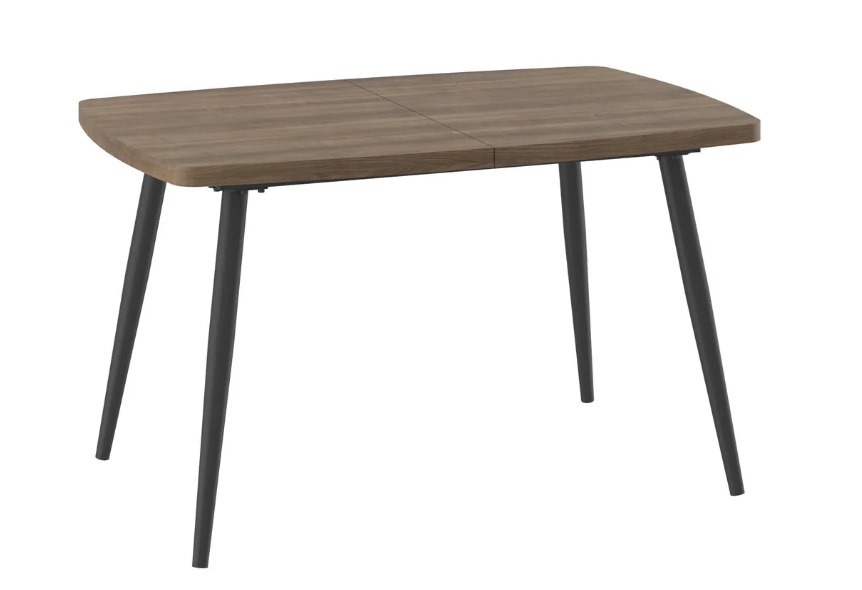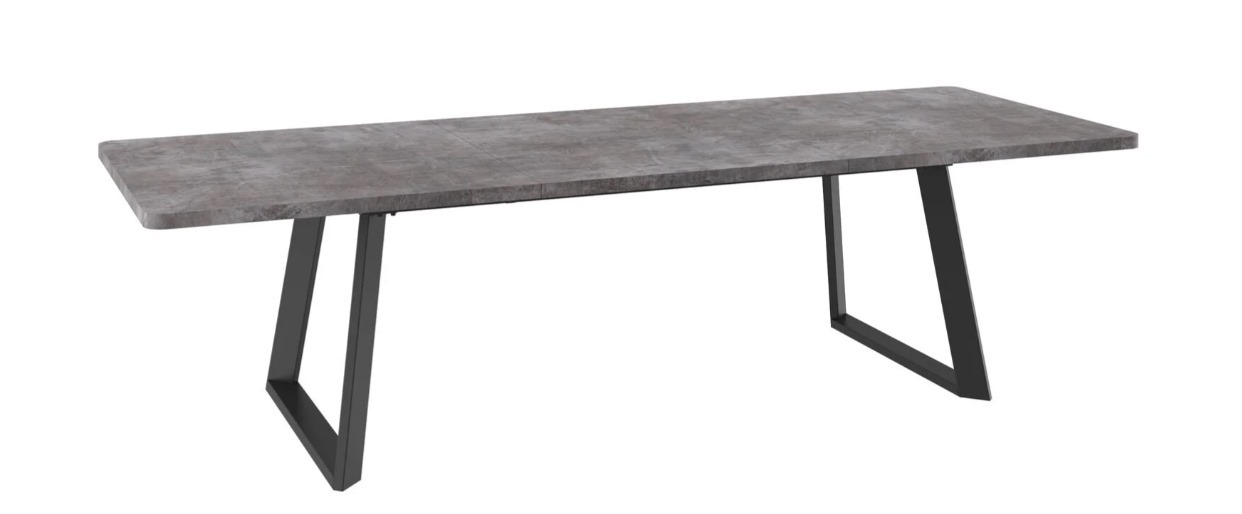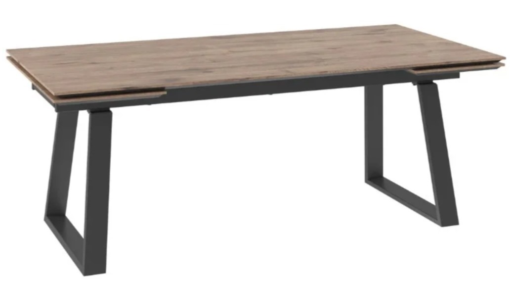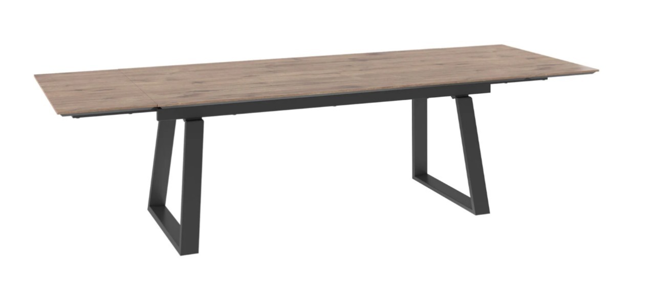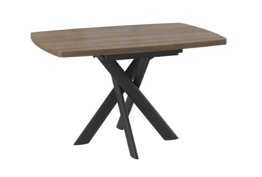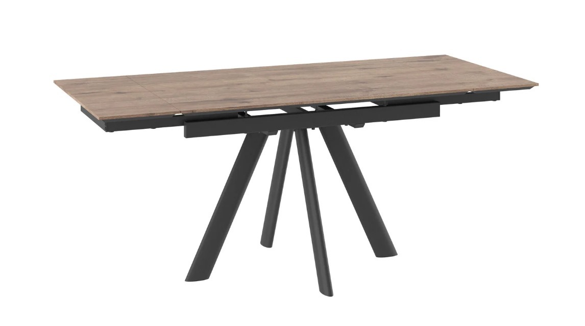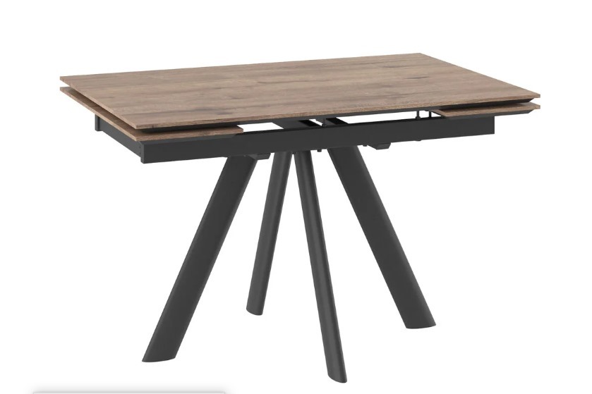 Столешница с закругленными углами точно передает поверхность и фактуру дерева дуба велингтон и керамики дымчатого цвета. Центральная вставка позволяет увеличить длину стола до 180 сантиметров. Стол способен выдерживать нагрузку до 150 кг, а устойчивость ему обеспечивают четыре опоры из нержавеющего металла черного цвета, расположенные под наклоном.