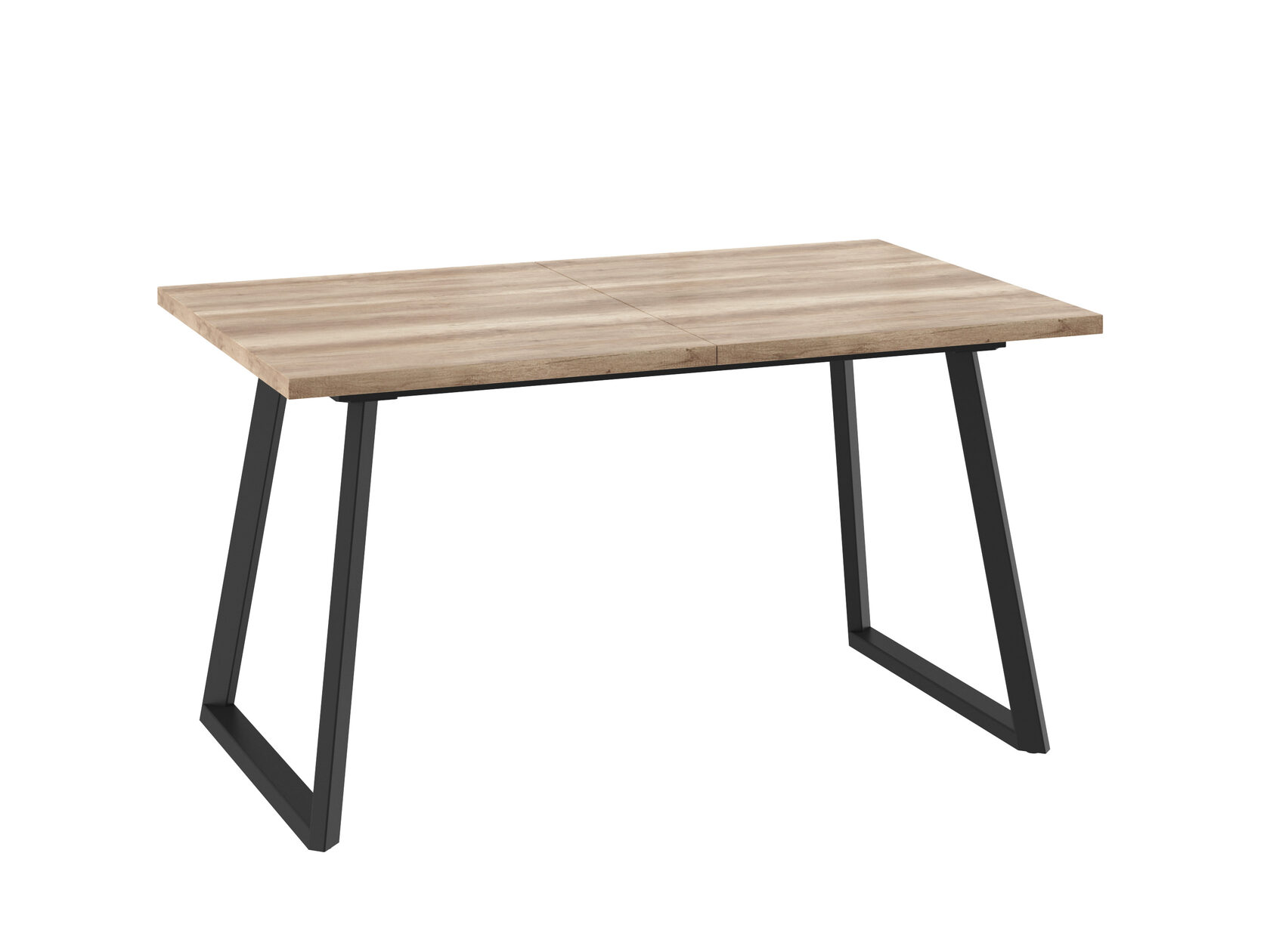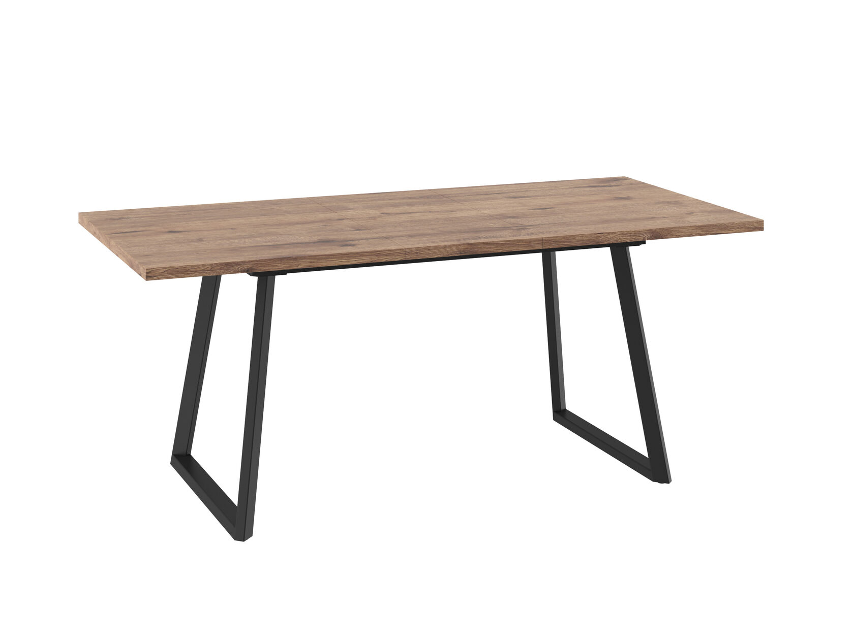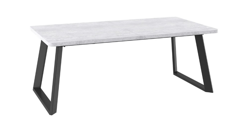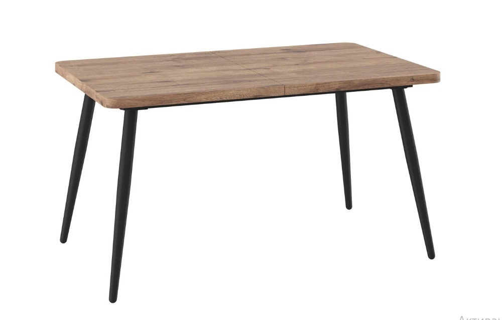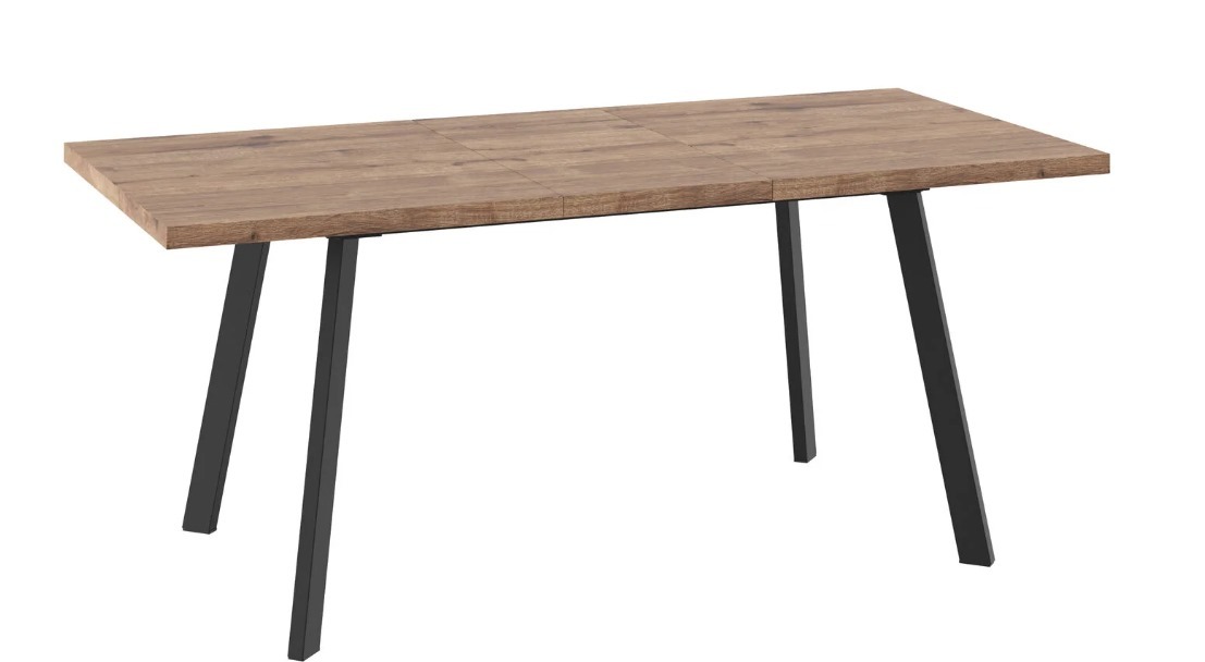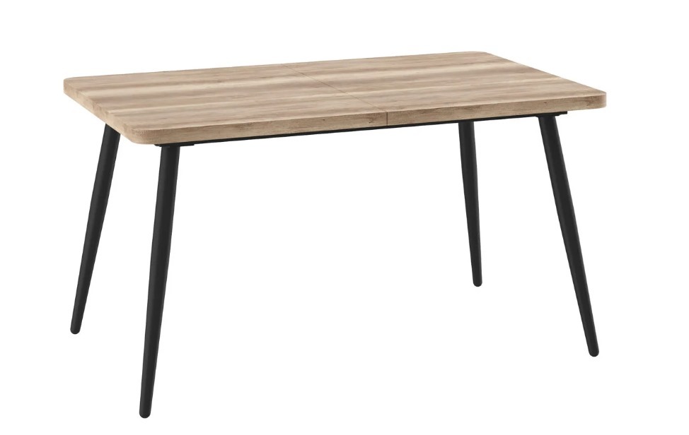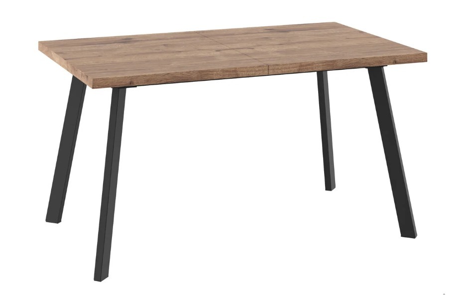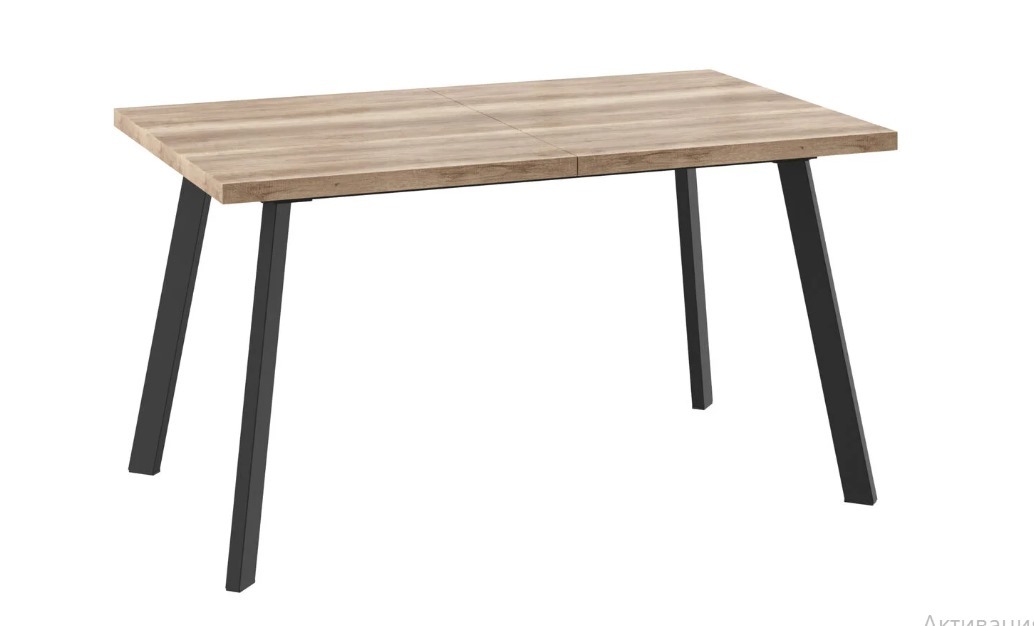 Столешница с закругленными углами точно передает поверхность и фактуру дерева дуба велингтон и керамики дымчатого цвета. Центральная вставка позволяет увеличить длину стола до 180 сантиметров. Стол способен выдерживать нагрузку до 150 кг, а устойчивость ему обеспечивают четыре опоры из нержавеющего металла черного цвета, расположенные под наклоном.