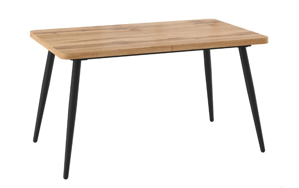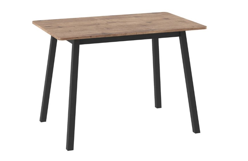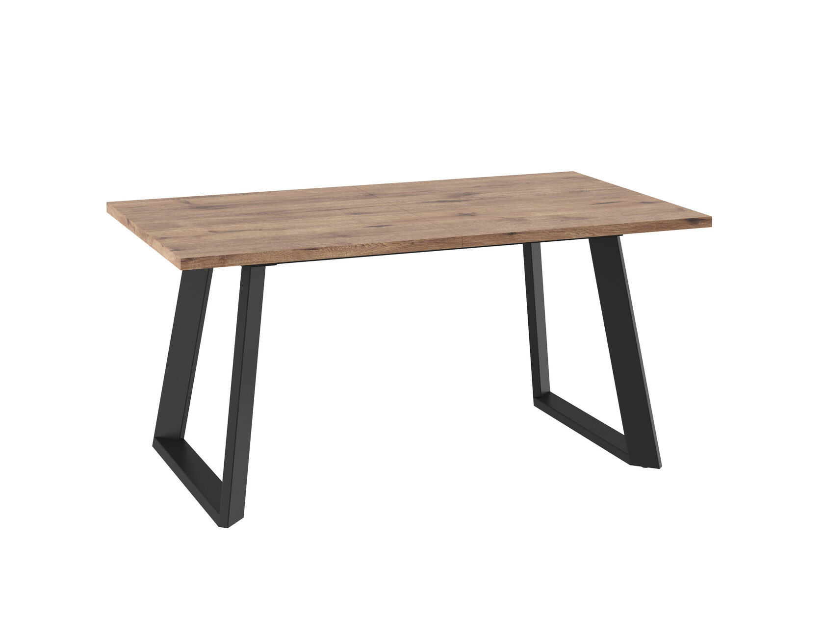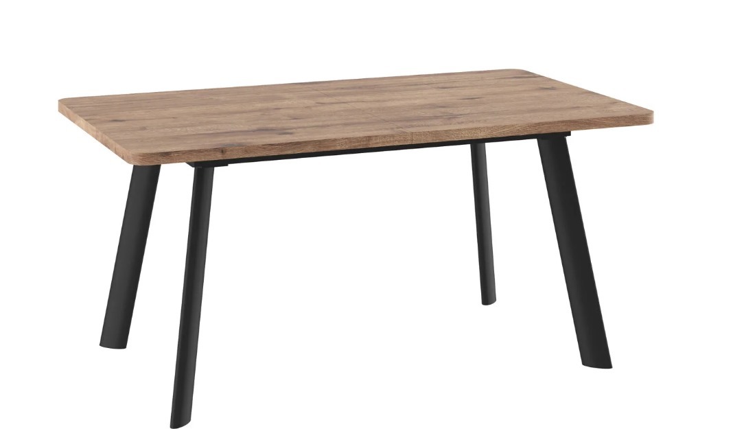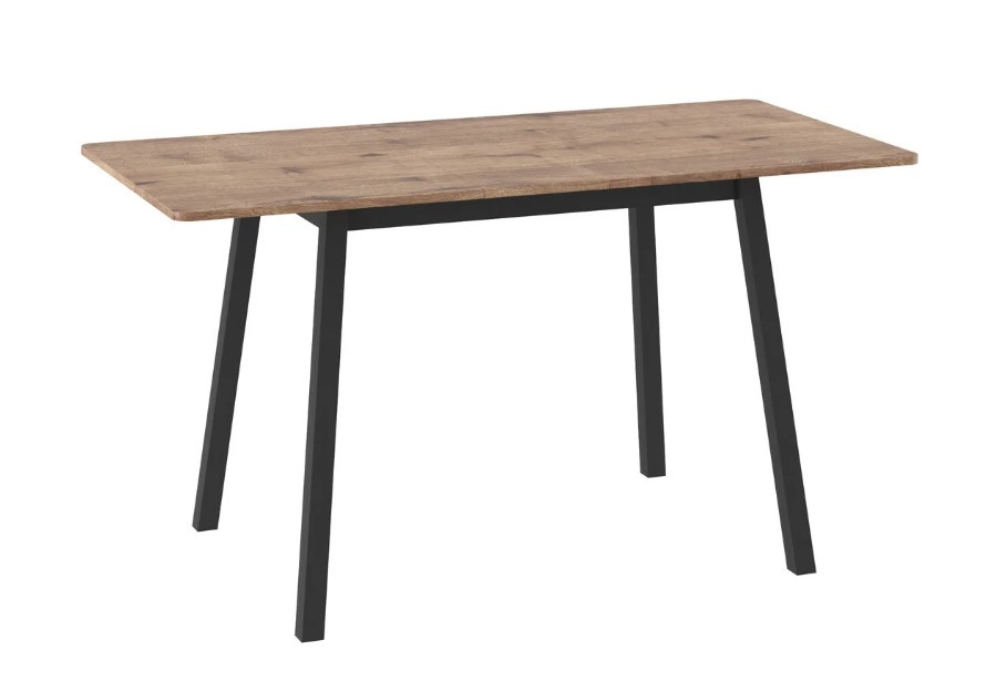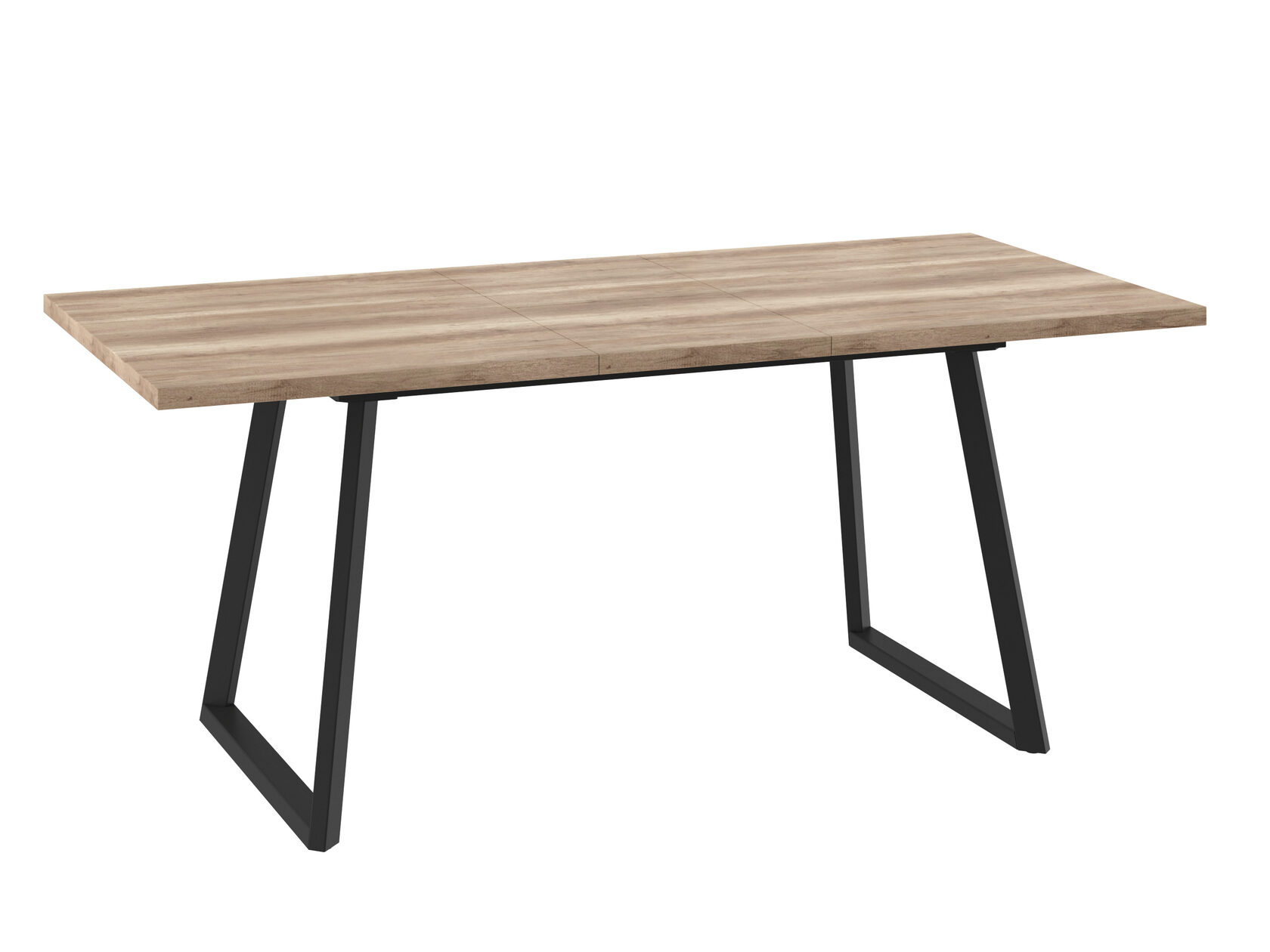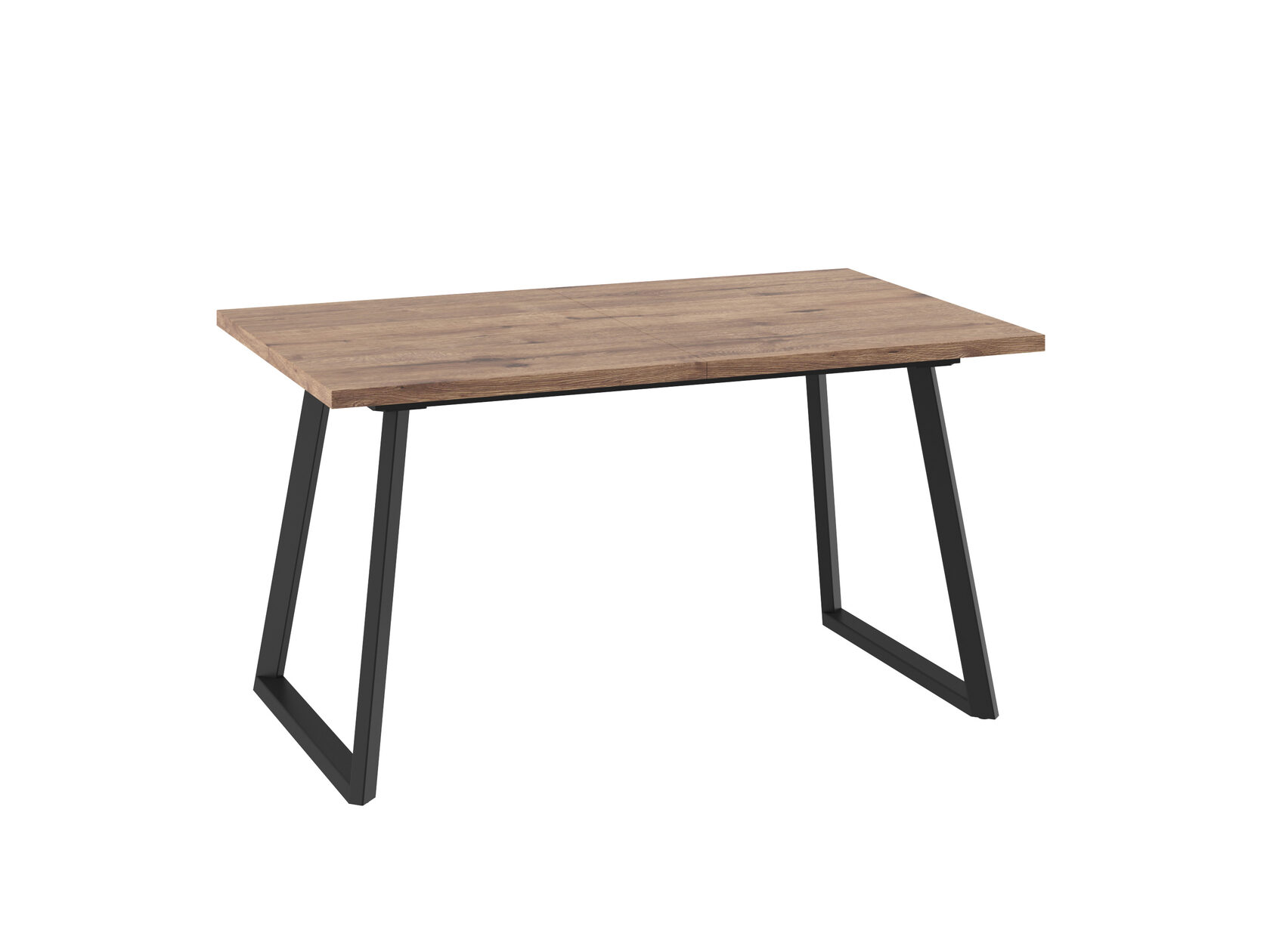 Столешница с закругленными углами точно передает поверхность и фактуру дерева дуба велингтон и керамики дымчатого цвета. Центральная вставка позволяет увеличить длину стола до 180 сантиметров. Стол способен выдерживать нагрузку до 150 кг, а устойчивость ему обеспечивают четыре опоры из нержавеющего металла черного цвета, расположенные под наклоном.